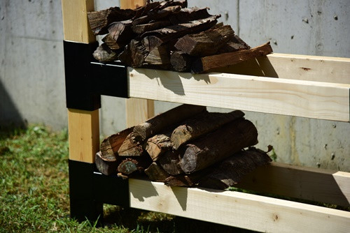 2段式「薪ラック」で大小サイズの薪を整理できます。