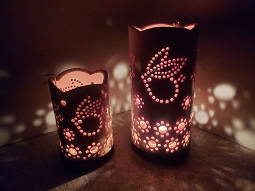 竹製キャンドルホルダー 肉球セットN-1 (表皮焦がしタイプ)…15,000 円 人と竹との関係は、縄文時代の竹かご、戦国時代の武具•防具、ろうそくの明かりとリの道具、華道茶道の道具、楽器、建築資材など生活に欠かせないものでありましたが、 現在は竹材の需要が減リ放置された竹が増殖し植生を脅かす「竹害」とまで言われるような時代になりました。 竹あかリの材料確保のため竹林に入リ伐採整備することは環境保全の一端を担っていることにもなっています。 どこにでもある素材をどこにもない逸品へと再生させます。 おうち時間にご活用ください。 地元の竹を伐採、乾燥・油抜きの工程を経てドリルで穴を開けニス仕上げしています。(黒く見えるのはバーナーで油抜き後、更に竹の表皮を焦がしています) 自然素材からの手作りのため、デザイン・大きさ等画像と異なる場合がありますので予めご了承ください。 乾燥や湿気により割れやカビが発生する場合があります(対策としてニス仕上げ済) 竹から漏れる灯りを楽しんでいただく他に、中に器を入れて一輪挿しやペン立てとしてご使用いただけます。 ローソクはティーライトキャンドル(直径38mm)の平たいものを使用してください。 キャンドルを灯している間はそばを離れず、可燃物の近くで使用しないでください。 提供:竹あかり「輪々」 - 常温便