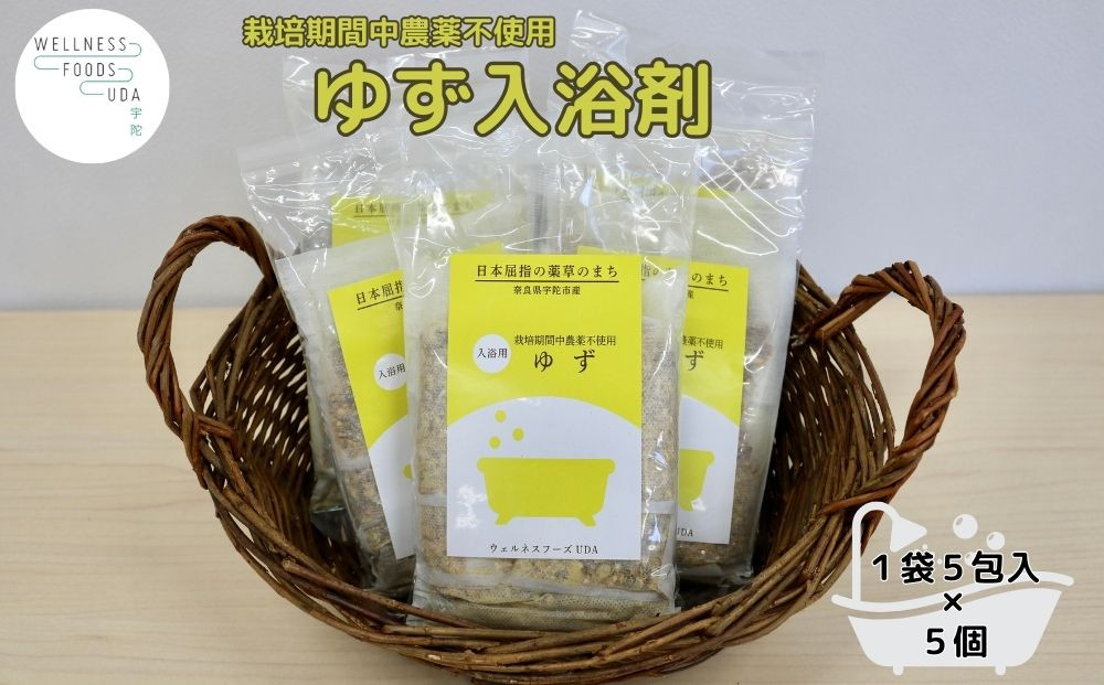 JAS認定 入浴剤 柚子 入浴剤 25包 (5包入×5個) /ウェルネスフーズ UDA ふるさと納税 ゆず 無添加 有機栽培 おすすめ リラックス ストレス解消 ボディケア 肌荒れ改善 疲労回復 送料無料 奈良 薬草