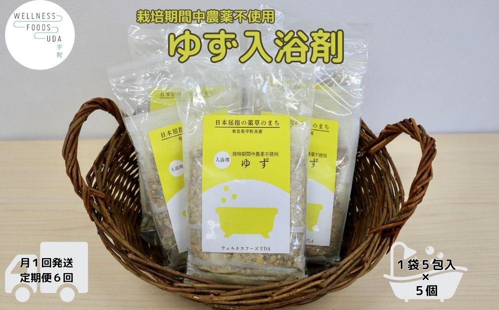 定期便6回 柚子 入浴剤 25包 (5包入×5個) /ウェルネスフーズ UDA ふるさと納税 ゆず 無添加 有機栽培 おすすめ リラックス ストレス解消 ボディケア 肌荒れ改善 疲労回復 送料無料