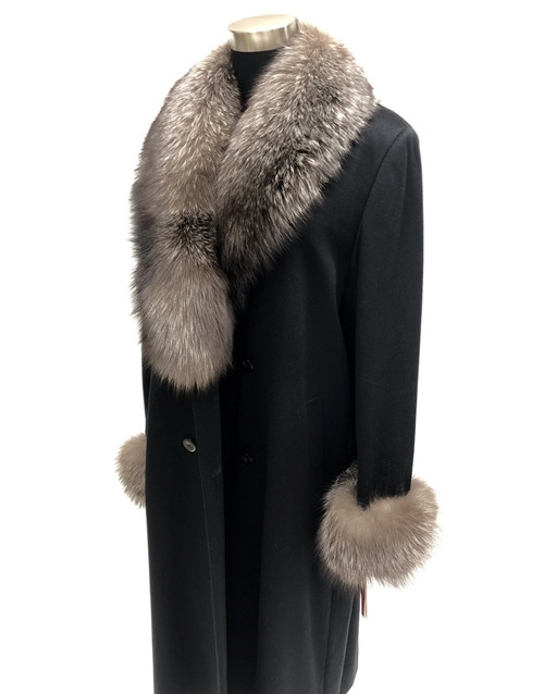 レディース ロングコート カシミヤ100% ブラック / 西本毛皮商店 サガ SAGA FOX 高品質 オシャレ 豪華 リアルファー 綺麗目 上品 お洒落 ファッション 毛皮 高級 贈り物 記念 敬老 母の日 誕生日 送料無料 ふるさと納税 奈良県 宇陀市 毛皮革団地