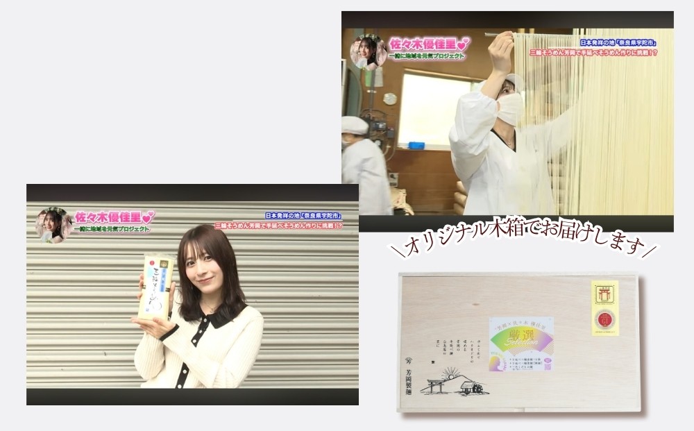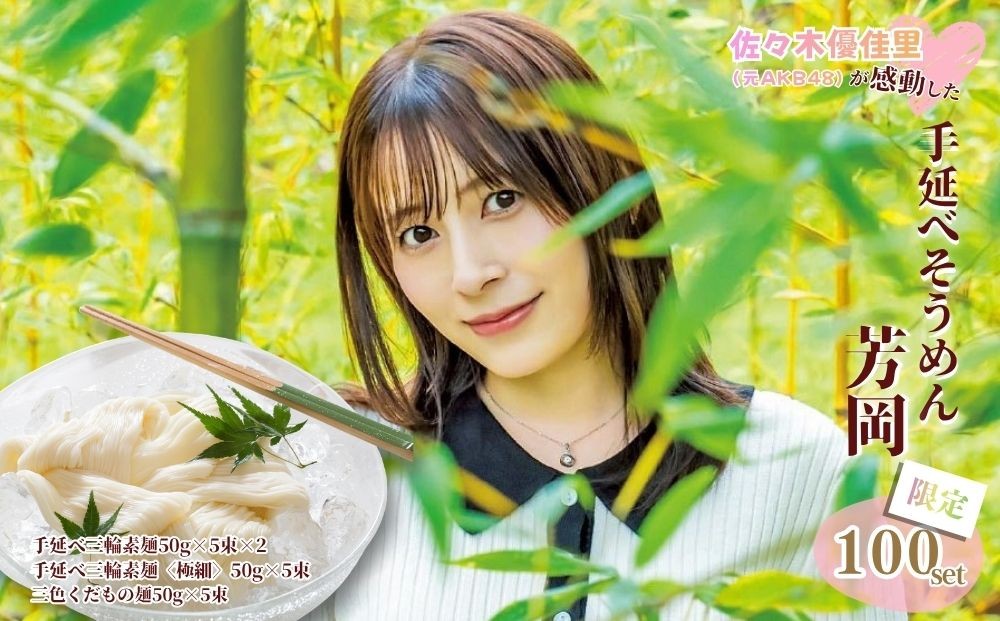 佐々木優佳里(AKB48第12期)が惚れ込んだ絶品「手延べ素麺」の特別セット! 佐々木優佳里(元AKB48)が感動した「手延べそうめん芳岡」【限定100set】/ 佐々木優佳里 AKB48 素麺 手延べ麺 三輪そうめん くだもの麺 保存食 乾麺 温かい 鍋の締め 化粧箱 お中元 お歳暮 お取り寄せ ギフト 奈良県 宇陀市