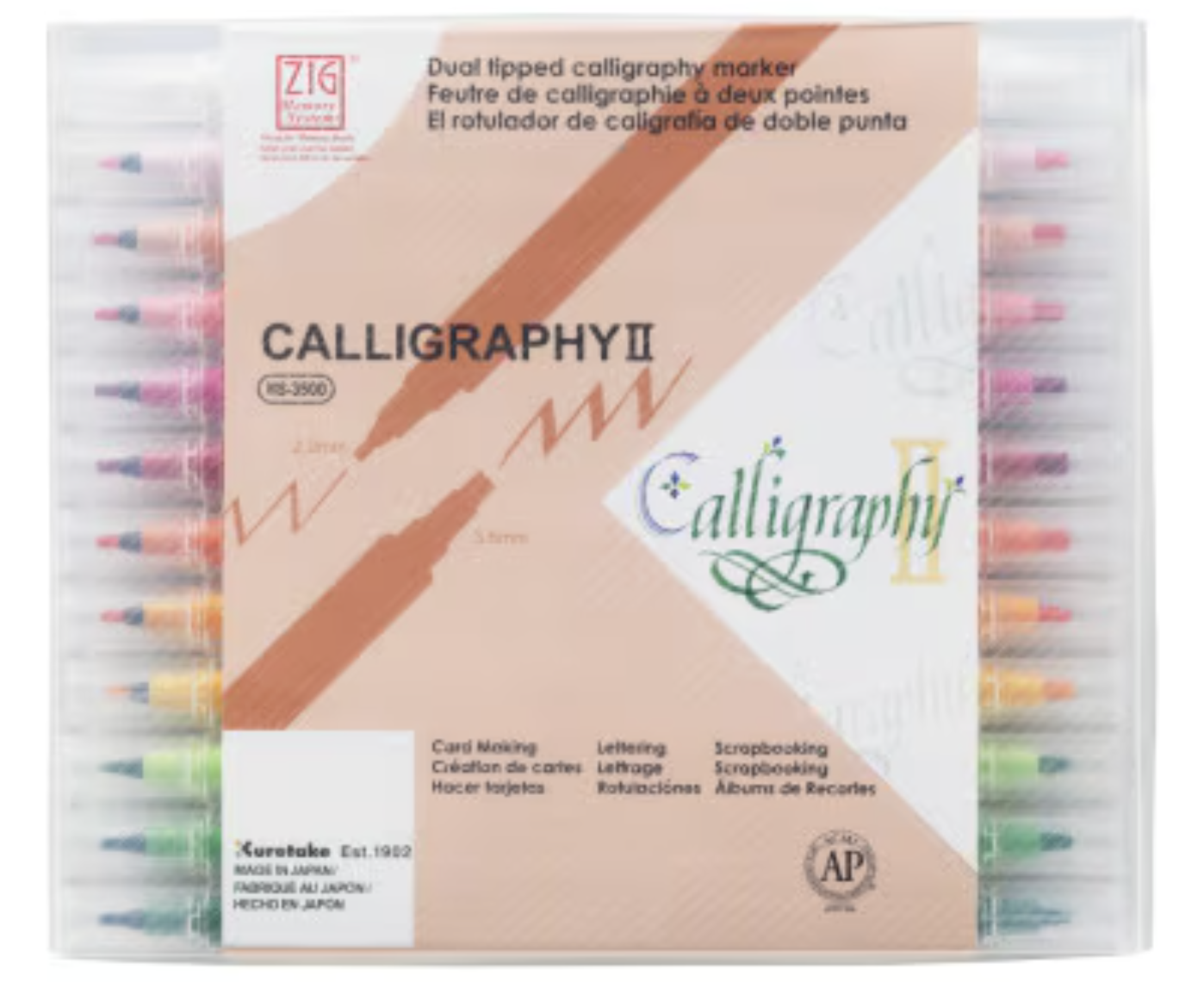 3.5mm芯&2.0mm芯のツインタイプのカリグラフィー用マーカー。 ZIG メモリーシステム カリグラフィー2 24色セット(MS-3500/24V)