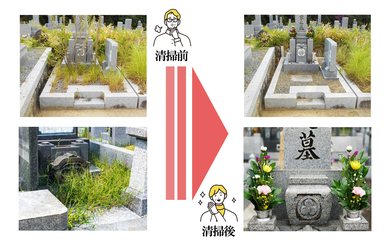 お墓のお掃除代行【墓石洗い・草取り・献花】3回 | 掃除 そうじ お掃除 お墓 墓 代行 奈良県 平群町