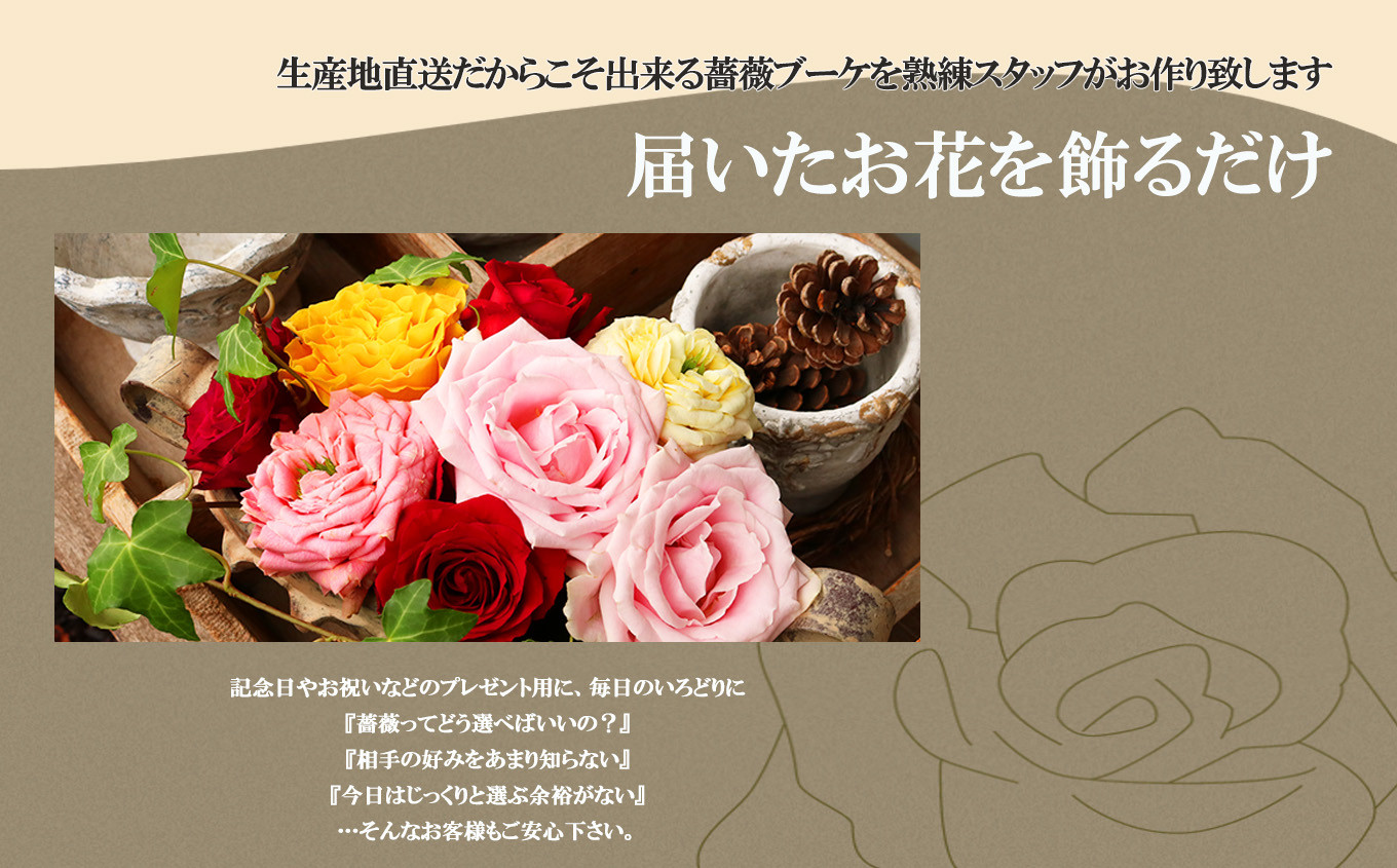 生産地直送だからこそ出来る薔薇ブーケを熟練スタッフがお作り致します