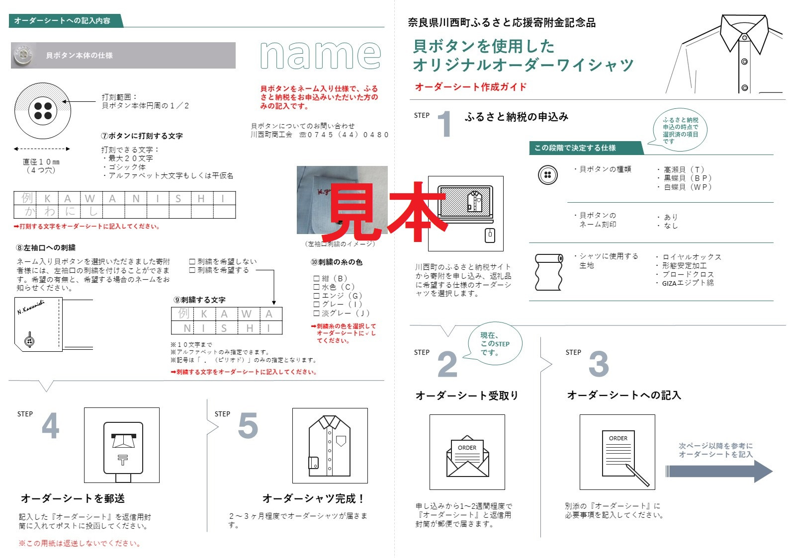 | 容量 | 奈良県川西町で製造された「高瀬貝または黒蝶貝の貝ボタン(10mm)※指定はできません」にオリジナルネーム等を彫刻した貝ボタンを装着したオーダーシャツです。(パターンオーダー) 生地:綿50% ポリエステル50% 日本製(形態安定加工) カラー:白・サックス・ピンク・グレー・白いちまつ・白ドビー・白ストライプ から選択 貝ボタンの種類:高瀬貝・黒蝶貝から選択 ※エリの型:カッタウェイも選べます。 特典:左袖口にローマ字筆記体でネーム刺繍のサービス(任意) |