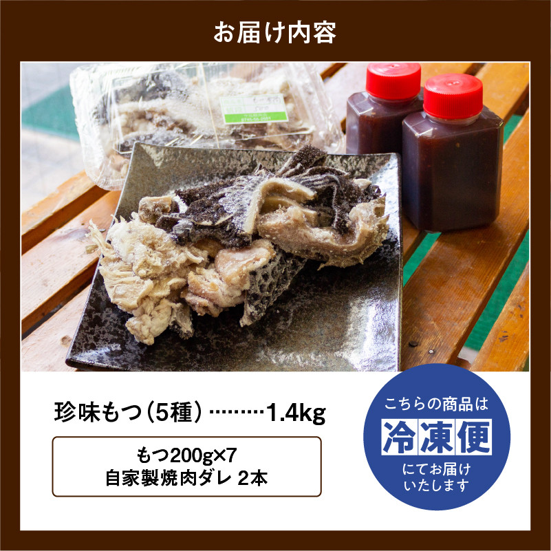 もつ 5種類 (200g×7パック) 自家製 焼肉 タレ 2本 セット 冷凍 お取り寄せ グルメ ハチノス ミノ テッチャン 赤 センマイ フク