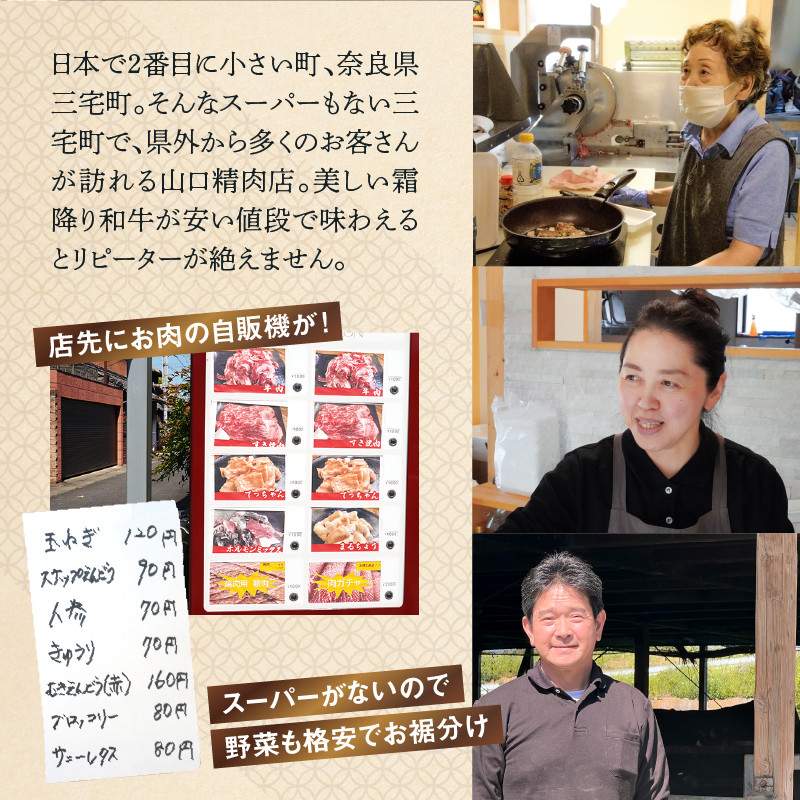 「山口精肉店」では、霜降りの肉もスーパーでは到底みることができない、破格の値段で提供しています。