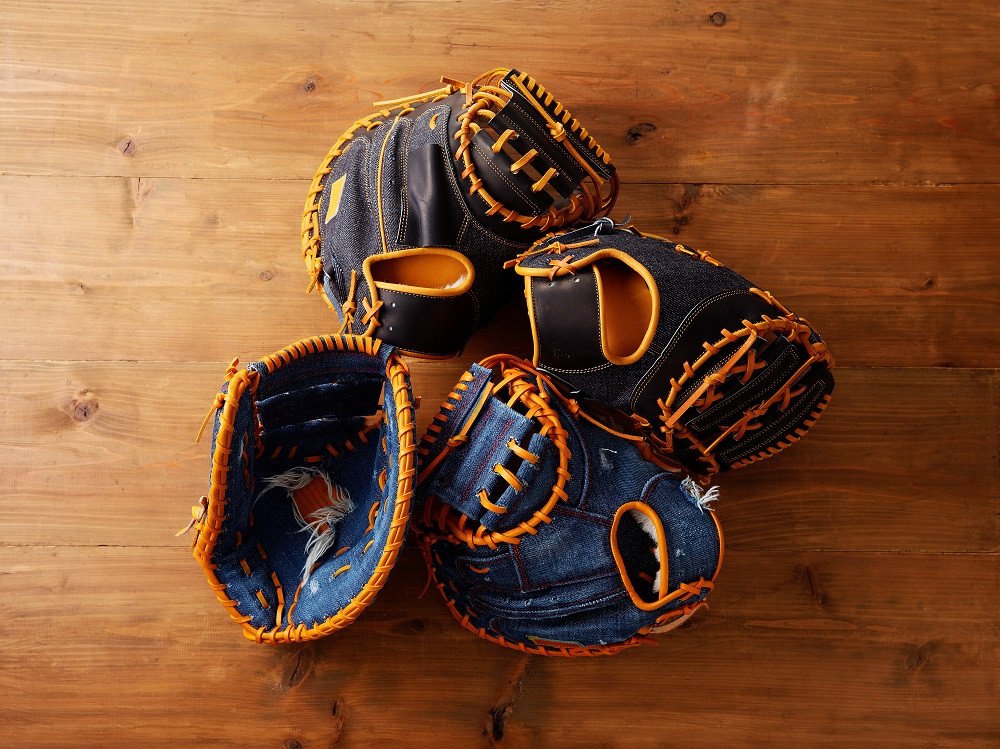 KUROKIのデニムを使用した硬式用キャッチャーミット。
