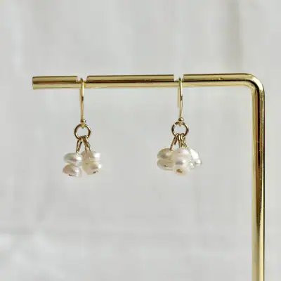 淡水パール (真珠) フックピアス (Silver925 18KGP仕上げ) / Maco アクセサリー シルバー ヘアライン加工 プレゼント 奈良県 田原本町