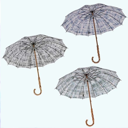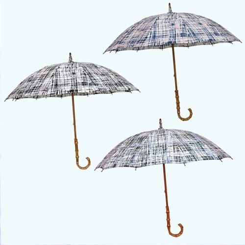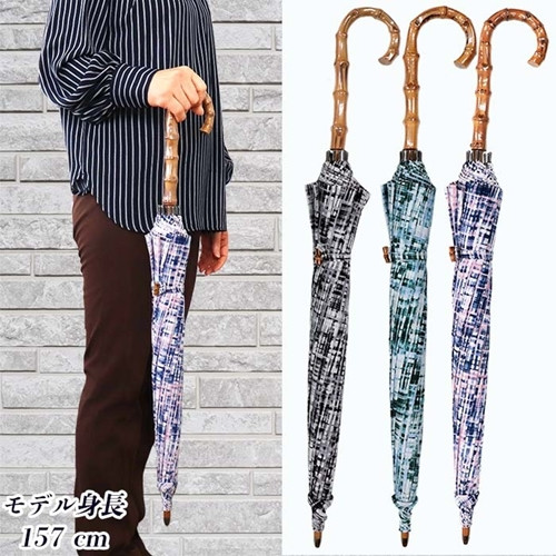 レディース晴雨兼用傘長傘531701麻プリント手書き風チェック柄手開き12本骨日本製GL / まちづくり観光振興機構 モダン 高級感 奈良県 田原本町