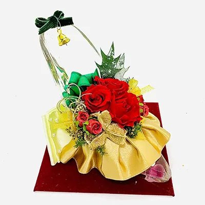 アクリルハイヒールの中にプリザーブドフラワーをアレンジメントしました。こちらは期間限定のクリスマス仕様で深紅のローズを3輪も使い華やかにしあげております。プレゼントにもおすすめです。