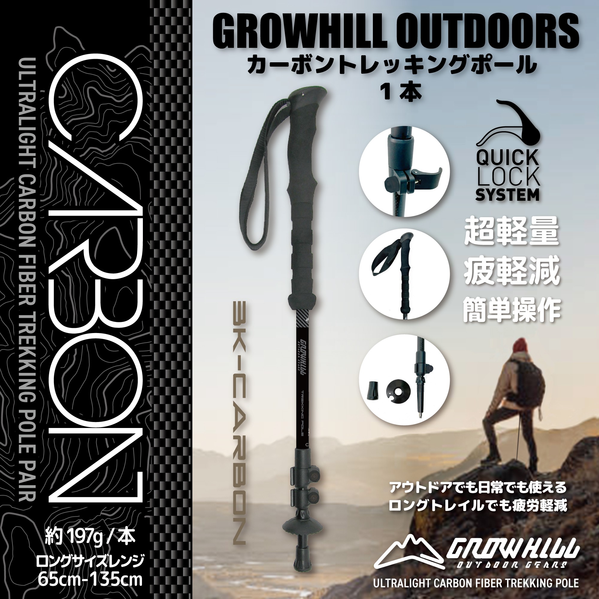 カーボントレッキングポール カーボンブラック GROWHILL / ジェイクリエイト アウトドア 軽量 クイックロック式 登山 奈良県 田原本町