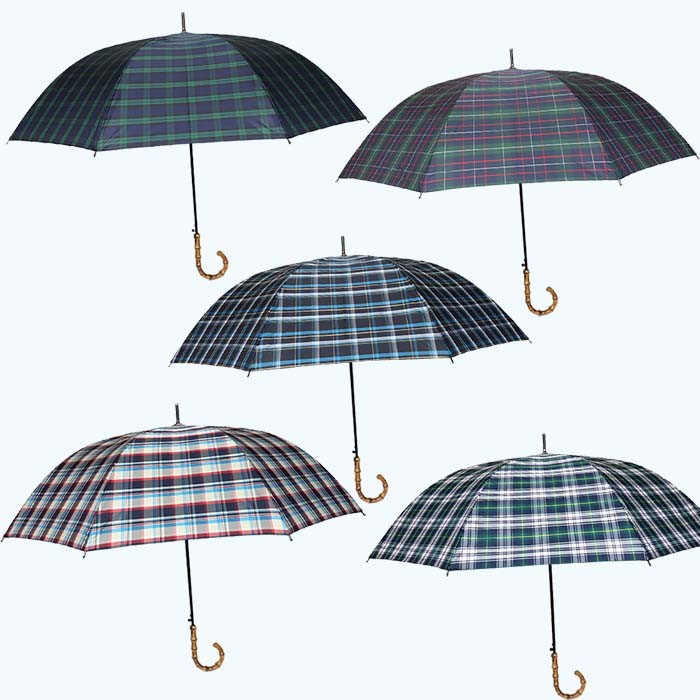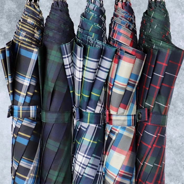 ・メンズ雨傘 長傘 322202 先染チェック ジャンプ傘 70cm 日本製 ネイビー×グリーンA[1点]