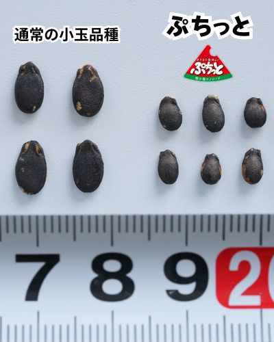 「ぷちっと®」の最大の特徴は驚きのタネの小ささ‼タネが口に入ってもほとんど気にならず、たまにタネを嚙んだとしても「ぷちっ」と心地よい食感で弾けます。さらに糖度も12~13度と高く中心と皮際の糖度差が少ないので、サイコロ状にカットしてお子様のデザートとして最適です。また大玉では冷蔵庫に入らず、小玉では物足らない、そんなスイカ好きの方々にお薦めしたい食べきりサイズの中玉スイカです。