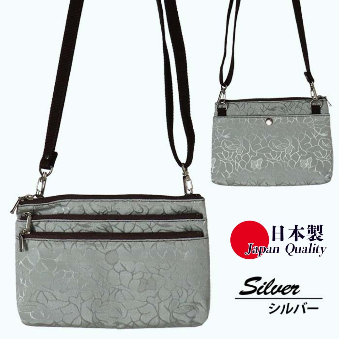 ローズ柄 シルバー ポシェット TJ-50 縦型 日本製 ミニショルダーバッグ レディース / まちづくり観光振興機構 傘生地 ちりめんジャガード 旅行 ウォーキング 防水 奈良県 田原本町