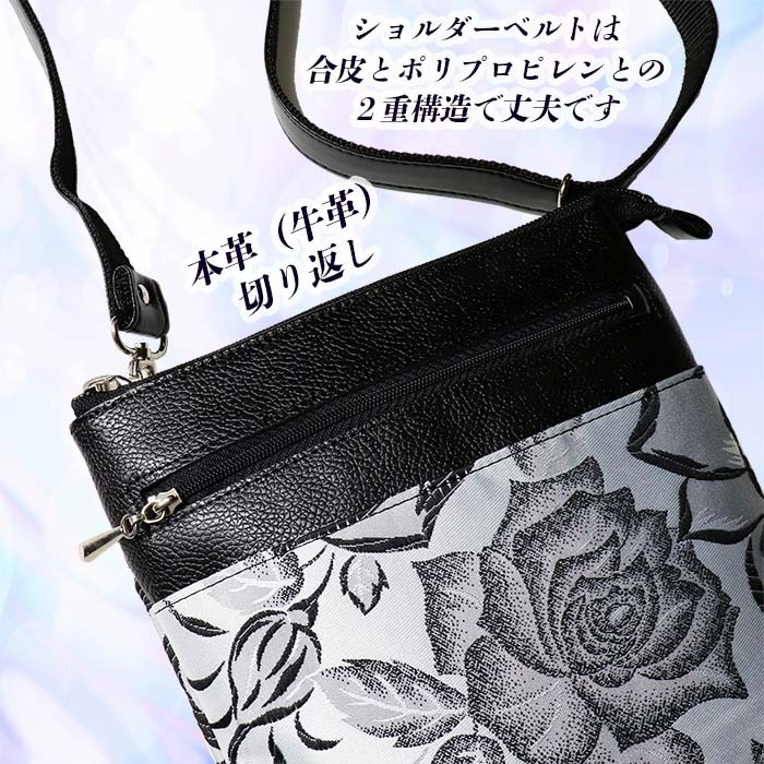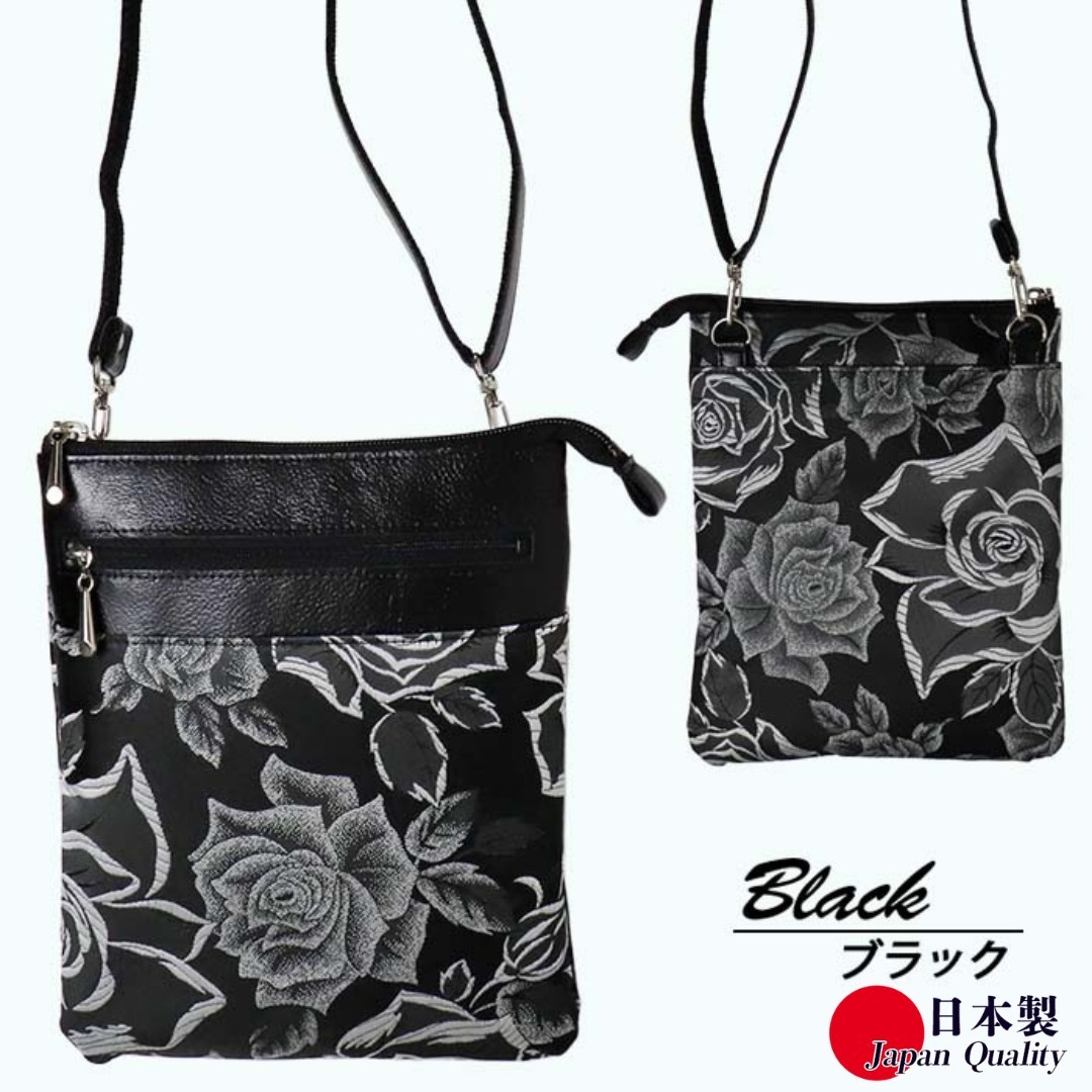 ・ローズ柄 ブラック ポシェット BR-69 縦型 日本製 ミニショルダーバッグ レディース[1点]