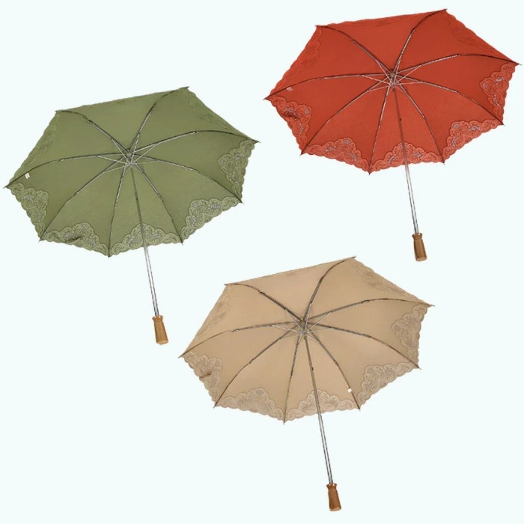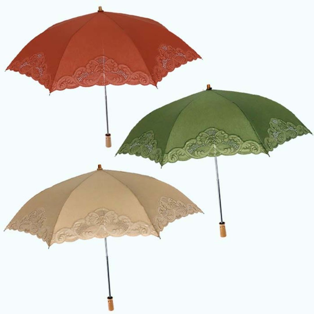 麻混の生地にアップリケのレースをはめ込んだ、レディース日傘 パラソル。