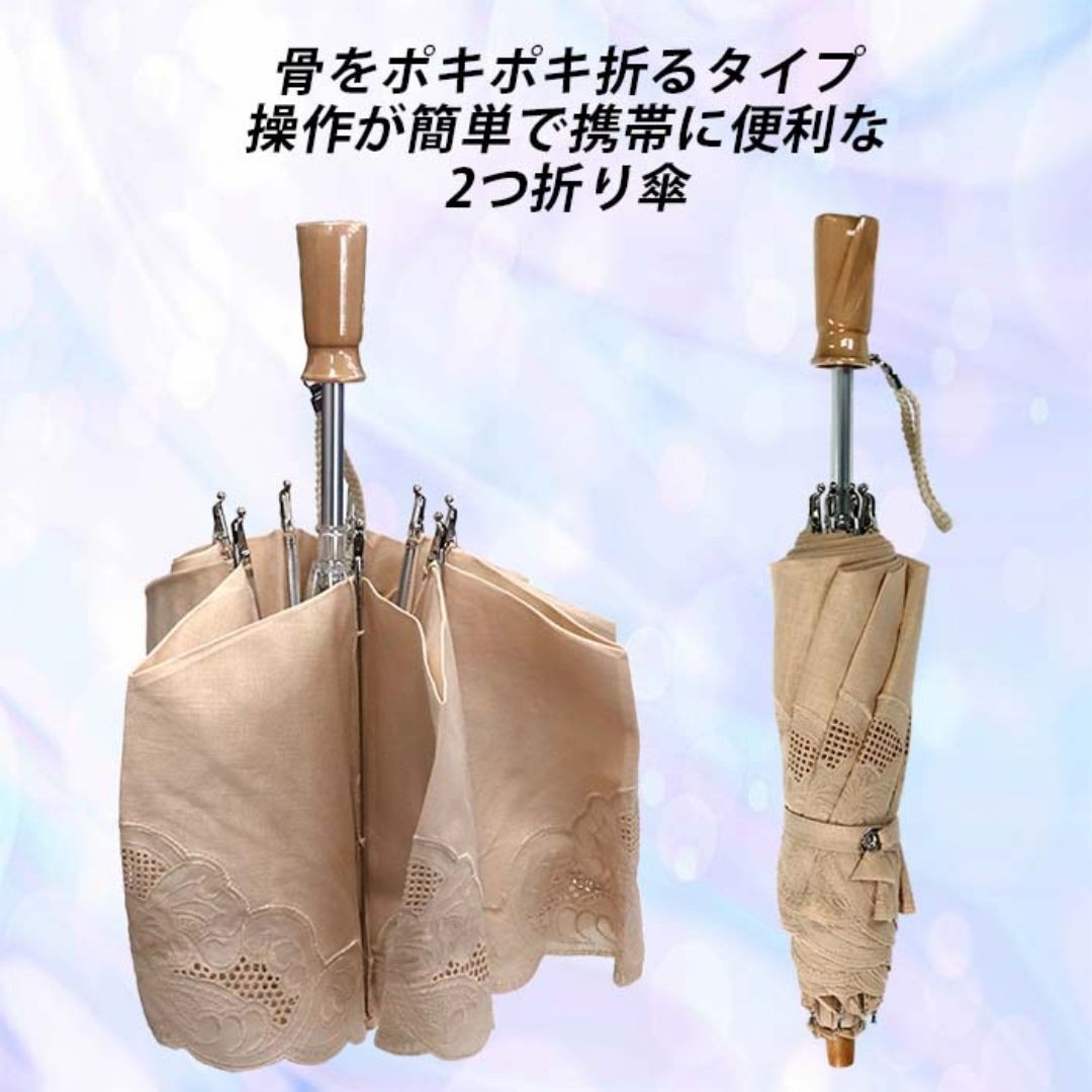 上品なローンレース切継ぎパラソル 傘 日傘 レディース 2つ折 レース切継ぎ UV防止 577902 日本製 ベージュ / まちづくり観光振興機構 レース 上品 木製ハンドル 紫外線対策 奈良県 田原本町