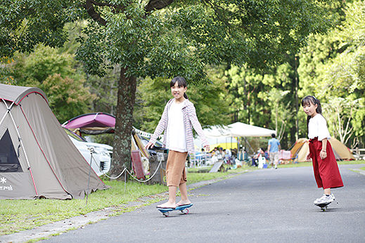 他にもバンガローサイト(4名~8名用・4棟)や、オートキャンプサイト(26サイト)、野外アスレチックゾーン、テスコート、温水シャワー、コインランドリー、浴場、そして全天候型のバーベキュー棟などの設備があります。