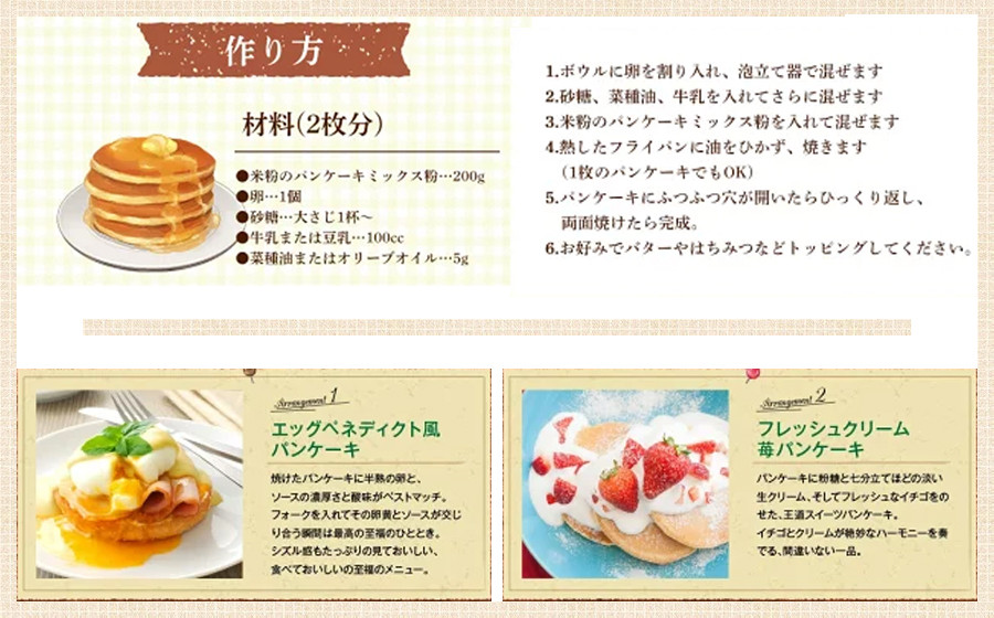 米粉のパンケーキミックスをぜひご賞味ください。モチモチで美味しいですよ!