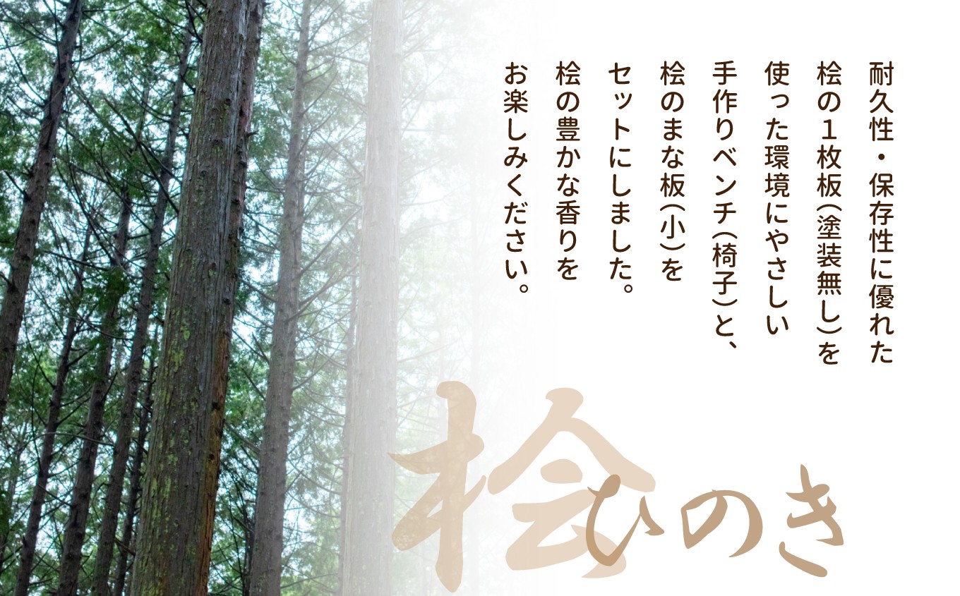 この自治体のポイントについてチョイス公式ポイント交換対象 環境にやさしい手作り、桧の上質な香りと肌触りを是非♪ A03 桧 ( ひのき ) 1枚板 折りたたみ ベンチ 【 椅子 】・ まな板 【 小 】 セット | 調理器具 インテリア チェア ヒノキ 抗菌作用 香り キッチン用品 キッチン まな板 キッチン 台所 調理 料理 まないた 屋内 屋外 木製 水気 や 湿気 に強い 耐久性 保存性 安定感 環境にやさしい ワンタッチ 塗装無し お取り寄せ 丹羽製材 奈良県 御杖村