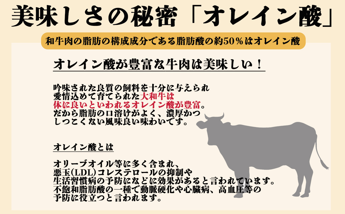 愛情込めて育てられた和牛肉は、体に良いといわれるオレイン酸が豊富。