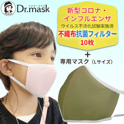 アニちゃんマークのドクターマスク(L(ふつう)カーキ)+不織布抗菌・抗ウイルスフィルター(10枚)【1300030】