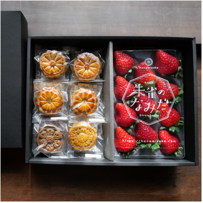 点心カフェ 花水土香が紡ぐ 古代瓦月餅とブランド苺(奈良県産)『朱雀のなみだ』の2種ギフト・セット【1476618】