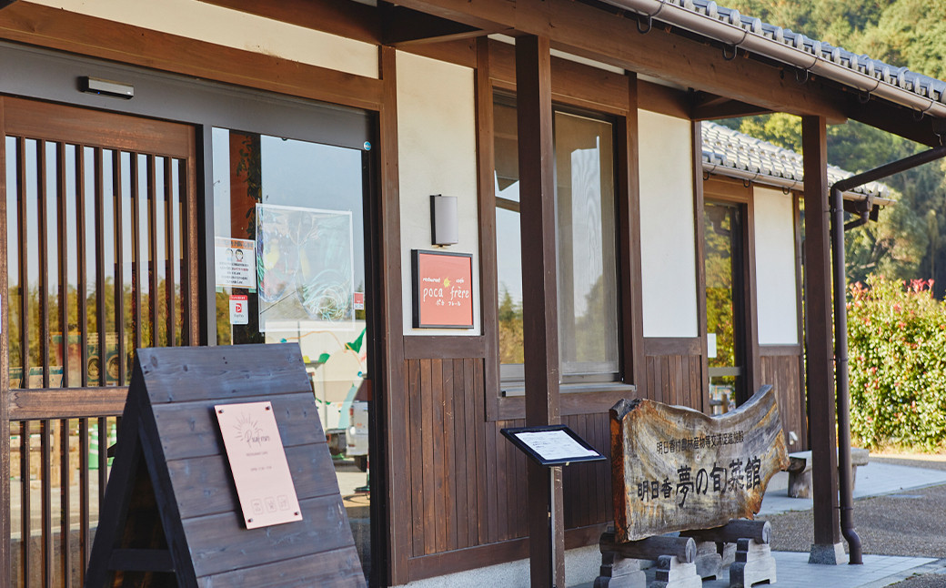 名所・石舞台古墳に近くにあり、旅行者だけでなく、地元の人たちにも人気のレストラン「PocaFrere(ポカフレール)」。お隣の橿原市から2014年に移転して以来、明日香村産の野菜や豆腐を活かしたフレンチベースの料理を提供しています。