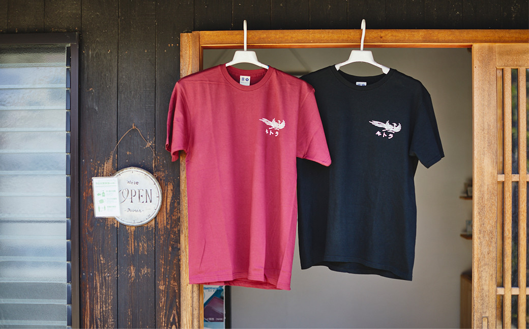 明日香村の貴重な財産、キトラ古墳壁画の四神は、もちろん、おもいで堂でも大切なモチーフ。四神と毎日一緒に過ごせる、トートバッグやTシャツはお店の人気商品のひとつです。お気に入りのカラーを選んで、セットで楽しんでください。