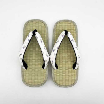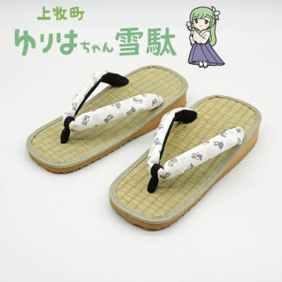 上牧町PRキャラクター、雪駄を履いてお散歩好きの「ゆりはちゃん」の柄入り鼻緒の畳草履です。天板には畳を使用し、畳の気持ちの良い足当たりと通気性でベタつかず快適に過ごせます。底には軽量EVAを使用し、軽くクッション性もあり外遊びにもおすすめ。EVAは柔らかくフローリングも傷つけませんので内履にも履いていただけます。近頃「足育」が注目されており、草履を履くことで、底面や鼻緒を足指でしっかり掴んで歩くことや足指をしっかり使うことができ、土踏まずを作る上でとても有効な履きものと言われています。