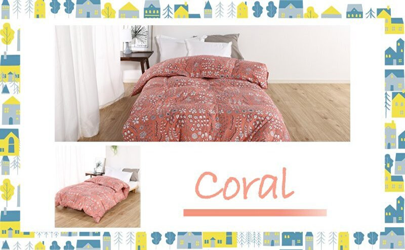 羽毛布団シングル(北欧調)掛け布団日本製ダウン90%1.0kg立体キルトコーラル