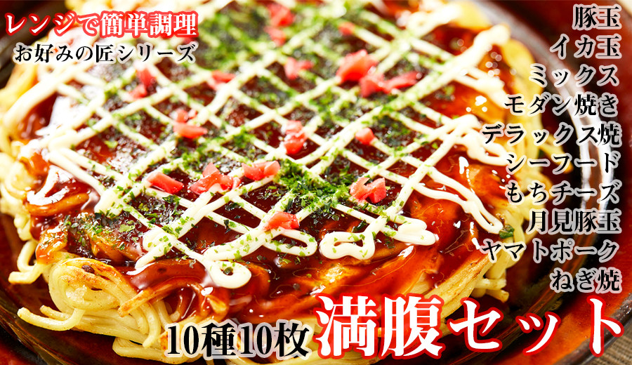 関西風お好み焼きをご自宅で簡単レンジ調理 【全10種】お好みの匠 まんぷくセット /// 国産 奈良県 広陵町 冷凍食品 冷食 冷凍 ふわふわ フワフワ 関西風 大阪風 お好み焼き 豚玉 もちチーズ焼 ねぎ焼 レンジ調理 国産小麦粉 一人暮らし 家族 レンジ 温めるだけ 簡単 大人気 美味しい 送料無料 紙皿 洗い物 奈良県 広陵町