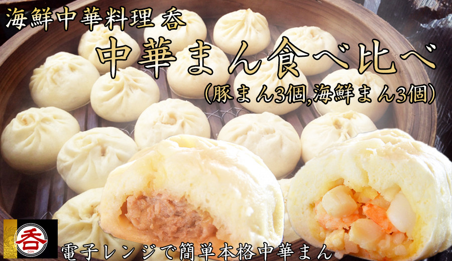 海鮮中華料理「呑」で大人気の2種類の中華まんが食べ比べセットで登場 レンジOK!肉汁溢れるヤマトポーク肉まん、具材ゴロゴロ海鮮中華まん食べ比べセット(豚まん・海鮮まん各3) /// 肉まん 豚まん 海鮮まん 中華まん ヤマトポーク ブランド豚 中華料理 レンチン 電子レンジ 食べ比べ 簡単料理 奈良県 広陵町