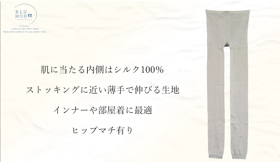 インナーや部屋着に最適!! BLUMONシルクスパッツ(10分丈)/// 薄手 レギンス ルームウェア 部屋着 スパッツ シルク 10分丈 フリー インナー 日本製 奈良県 広陵町