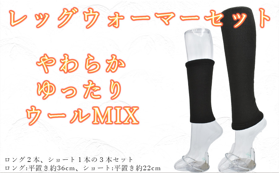 ウールMIXのあったかレッグウォーマー レッグウォーマー ロング2本 ショート1本 3本セット /// ルームウェア 部屋着 レッグウォーマー やわらかい ゆったり あったかい 暖かい 温かい 日本製 奈良県 広陵町