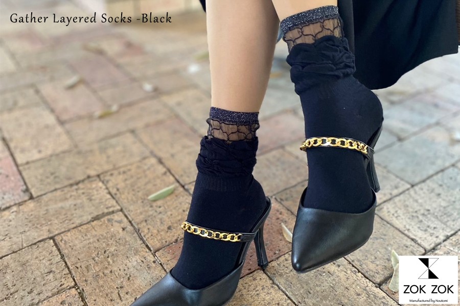 ◆ギャザーレイヤードソックス(綿70%、ナイロン28%、ポリウレタン2%)