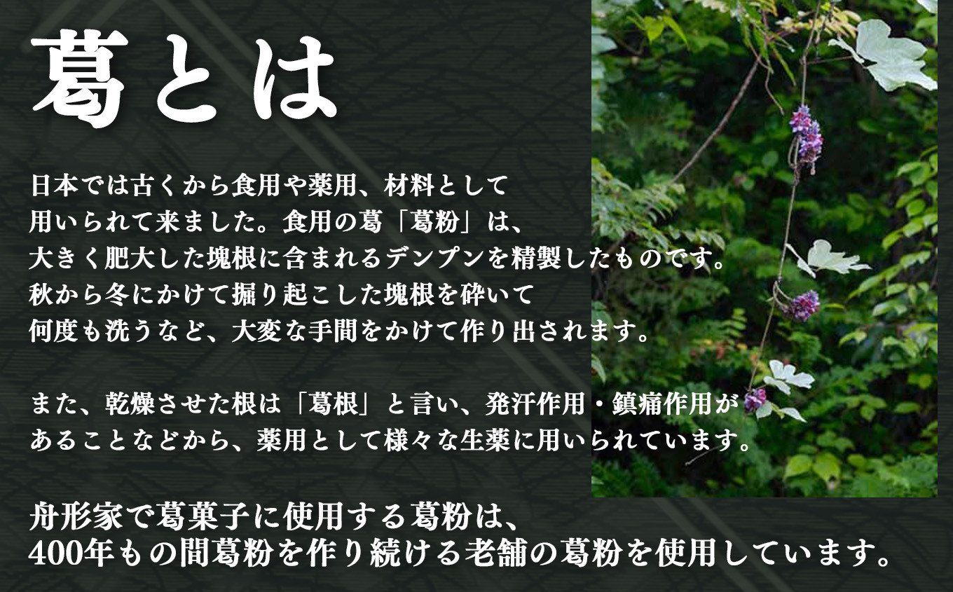 天然素材の吉野葛を使用いたしました。葛のお菓子のなめらかな食感とまろやかさが特徴の和菓子です。