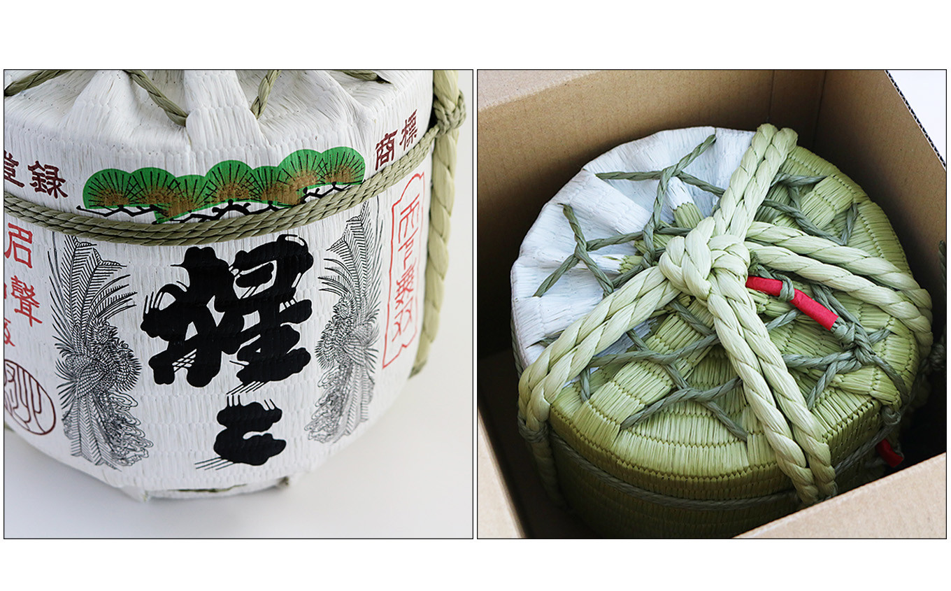 吉野の酒蔵直送の菰樽を1.8ℓの大きさにし、純米酒を詰めた樽酒を堪能していただけます。またお祝いの席にお使いいただける商品です。
