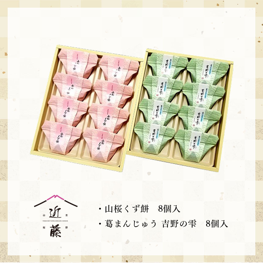 | 容量 | 山桜くず餅 8個入 葛まんじゅう 吉野の雫 8個入 |