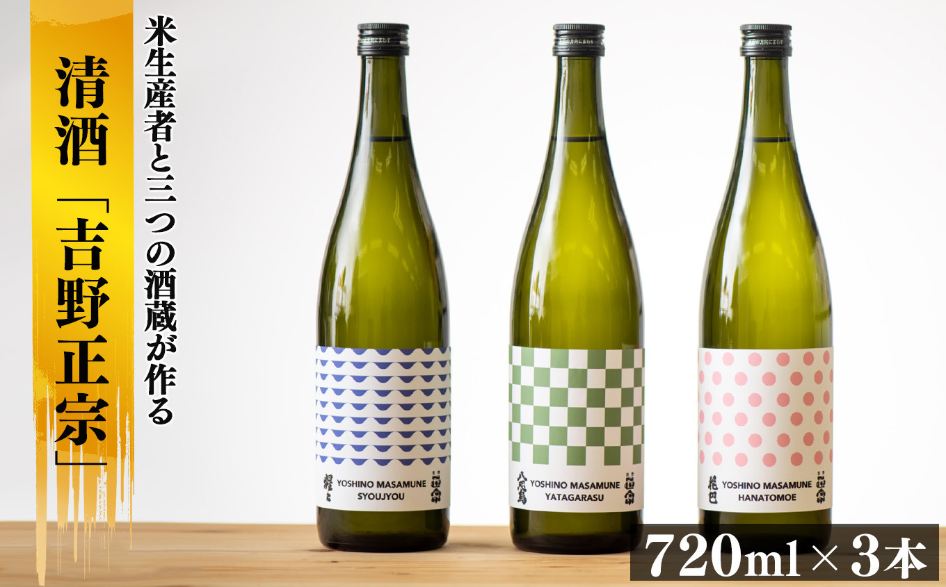 米生産者と3つの酒蔵が作る吉野ブランド日本酒「吉野正宗」 清酒「吉野正宗」3銘柄吞み比べセット