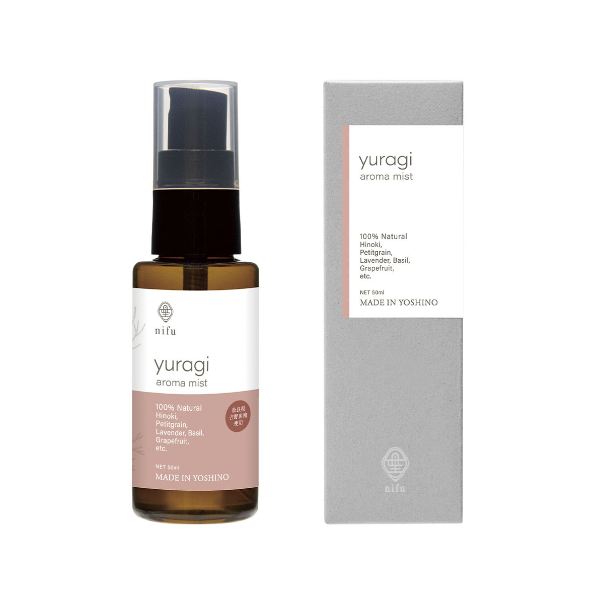 最高級の吉野ヒノキをふんだんに使用した自信作! nifu オリジナル天然精油アロマミスト『yuragi』 50ml×1本 リラックス ひのき 奈良 吉野町