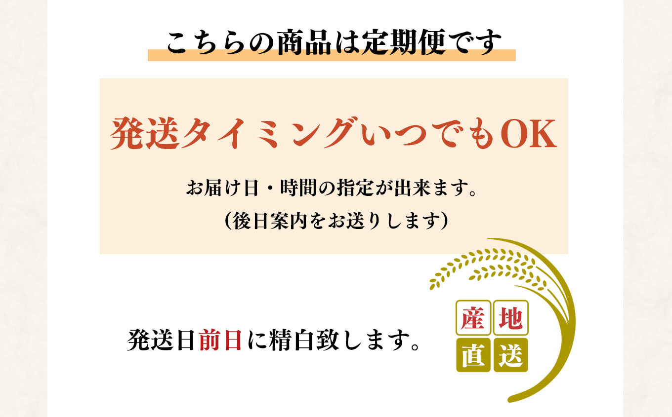 | 容量 | 10kg×6回分 計60kg 白米(お好きなタイミングで6回) |