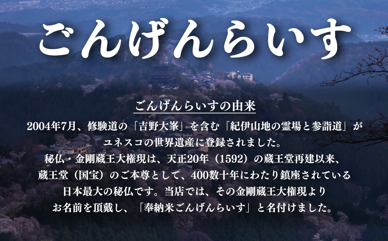 吉野限定ブランド米「吉野大峯ごんげんらいす」