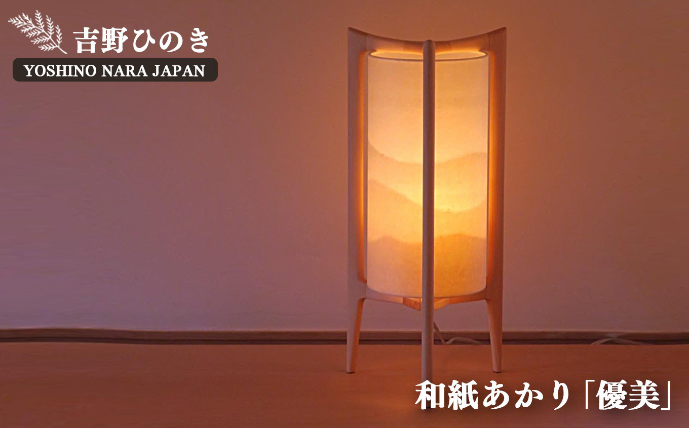 銘木・奈良吉野産檜を使用 吉野ひのきのあかり【優美】より安らぎのひと時を AD3 吉野和紙あかり【優美】和紙山並 | 和紙山並 銘木 奈良吉野産檜 ランプ 電気 手作り 電気用品 奈良県 大淀町 安らぎ リラックス