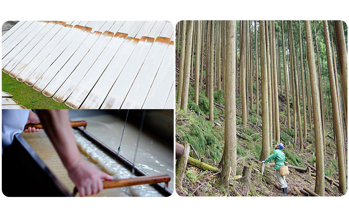 吉野福西和紙本舗さんの和紙は、コウゾ100%で漂白剤などの化学薬品を使用せずに伝統の手法を守り続け、 丁寧に手作り天日干しされたとても薄く強い上質な和紙です。