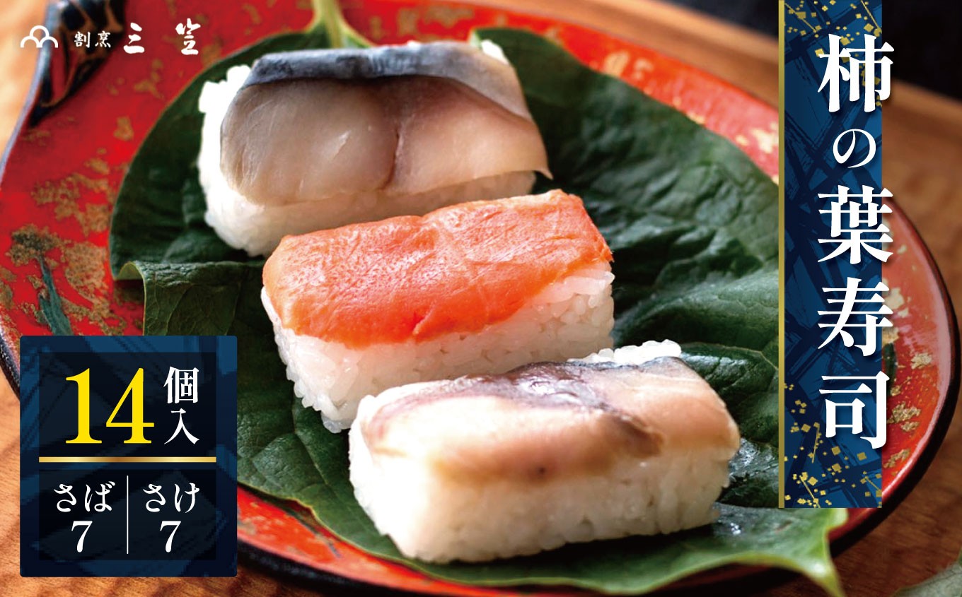 創業1933年の老舗【割烹 三笠】からお届け P5 柿の葉寿司 (さば7・さけ7)14個入 【割烹 三笠】 | 柿の葉すし 柿の葉ずし 寿司 すし 鯖 さば サバ 鮭 サケ 冷蔵 奈良県 大淀 老舗 和の伝統の味 ※北海道、沖縄、青森、秋田、離島地域へのお届け不可