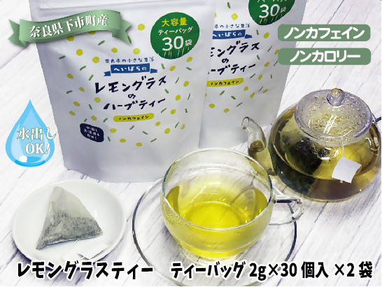 無農薬・有機栽培にこだわり、とても豊かな香りとクセのないフレッシュな味わいが特徴 52.レモングラスハーブティー(奈良県下市町産)ティーバッグ2g×30個入×2袋 水出しOK! ノンカフェイン 爽やかな香りとほのかな甘み