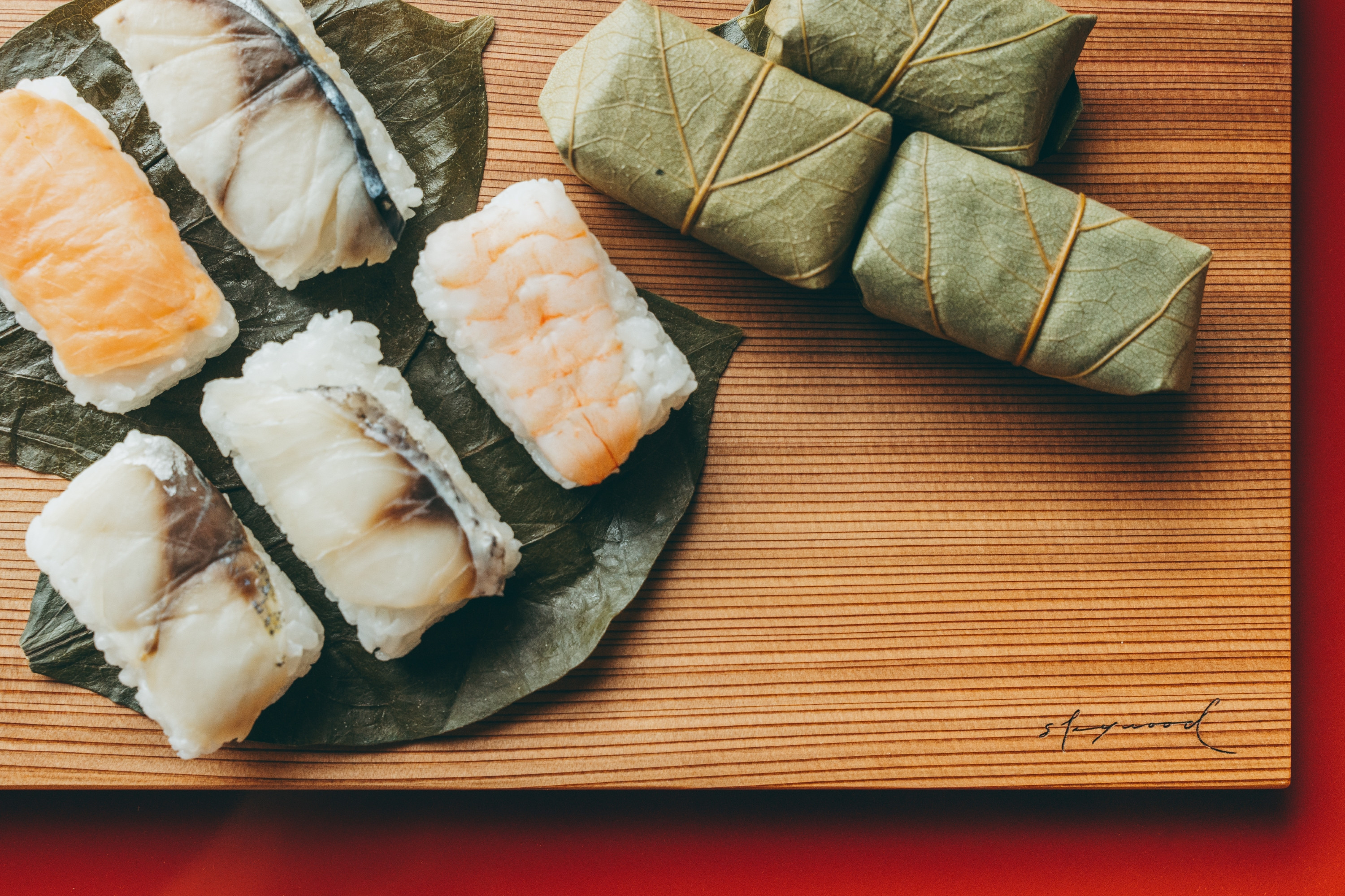 | 容量 | ・杉のまな板×1 Sサイズ:長さ300mm×幅180mm×厚み15mm(前後) ・柿の葉寿司「さば、さけ、あじ、たい、えび 各2個」5種10個入り |